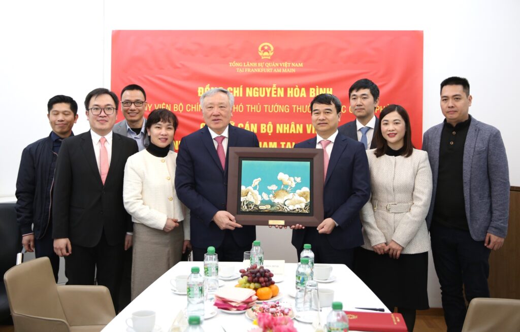 Nhân chuyến thăm và làm việc tại Đức, chiều 23/3 (giờ địa phương), Phó Thủ tướng Thường trực Chính phủ Nguyễn Hòa Bình đã tới thăm, gặp gỡ cán bộ, nhân viên Tổng lãnh sự quán Việt Nam tại Frankfurt.